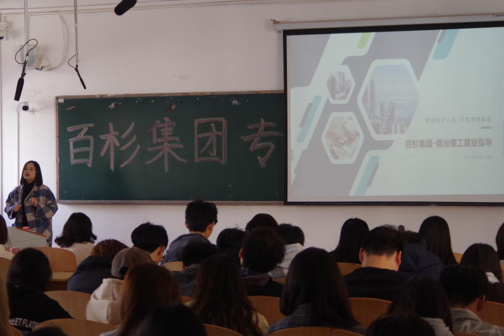 为拓宽就业渠道,优化各企业的人才结构,扎实做好2025届毕业生就业工作,3月30日,太阳成集团tyc9728于一教116举办百杉集团专场宣讲会,公司党总支副书记王明印、团总支书记祝箐、2025届毕业班班主任及全体毕业生参加本次宣讲会,大会由百杉集团负责人邢娜主讲。