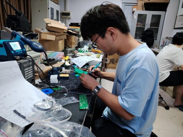 2024 年 9 月至 10 月,韩博在中科院海岸带研究所开展为期 1 个月的实习。期间,他不仅列席研究生组会,系统学习科研项目从选题论证到阶段推进的完整流程,更亲自动手实践:独立完成 2 款实验用电路板焊接,熟练掌握元器件焊接、电路通断检测技能;负责 200 余种电子元器件的分类、清点与入库,通过制定科学的物料清单与编码规则,大幅提升了管理效率,得到了实习导师的高度认可。