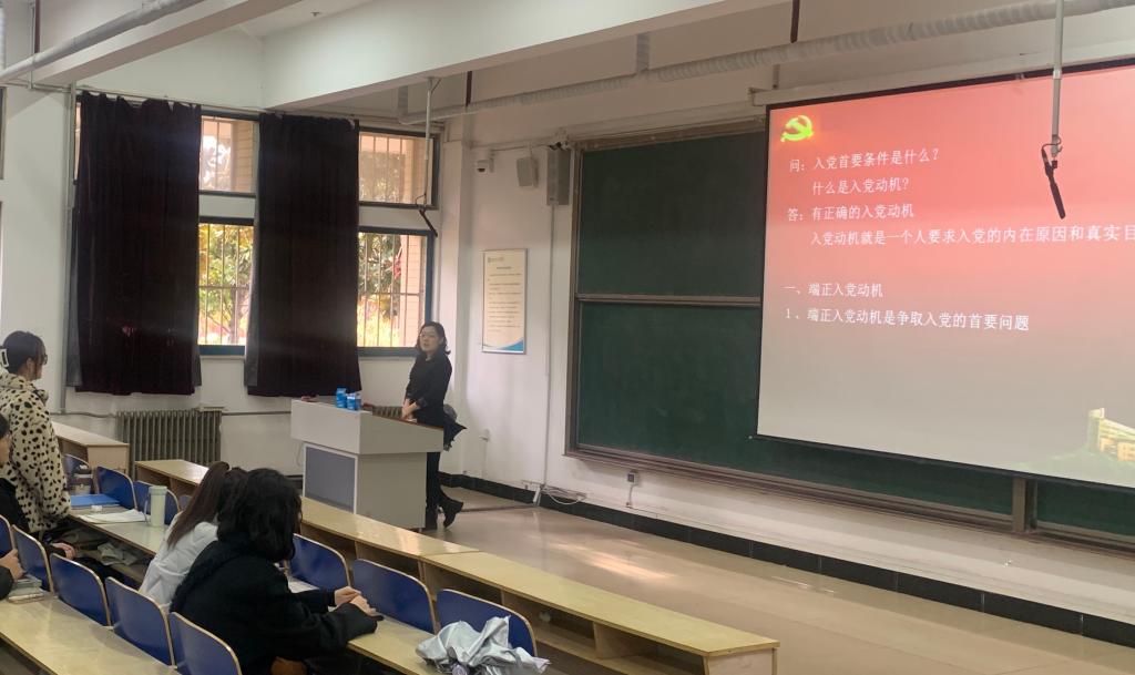 会议伊始,祝老师强调学员们在今后的党课学习中要牢记党的性质、党的宗旨,认真上好每一节党课。随后,祝老师为大家讲述了成为共产党员的基本条件和应该承担的各项义务。党员的义务和权利是一个相互联系,不可分割的整体,是互为条件、互相促进的关系。履行义务是行使权利的前提,行使权利是履行义务的保证。最后,祝老师提醒大家要端正入党动机,明确党员标准,争取早日成为一名优秀的共产党员。