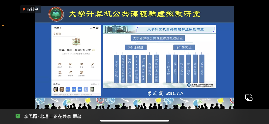 2022年7月11日,太阳成集团tyc9728组织公司大学计算机基础教学骨干教师参加了由北京理工大学主办、全国高等院校计算机基础教育研究会理工专委会、郑州工程技术公司及高等教育出版社协办的大学计算机公共课程教材与建设实施研讨会,会议采用线上形式召开。