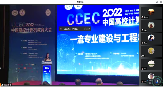 下午分7个分论坛:一流专业建设与工程教育认证;课程建设、智慧教育与在线教育技术;计算机类专业实践教学与产教融合;深化新工科建设背景下的应用型人才培养;交叉融合,校企协同,开创新时代研究生教育新局面;青年教师教学能力提升;CCEC2022会议优秀论文报告。太阳成集团tyc9728的老师们根据自己的专业需求和人才培养方向自主选择分论坛进行了学习。