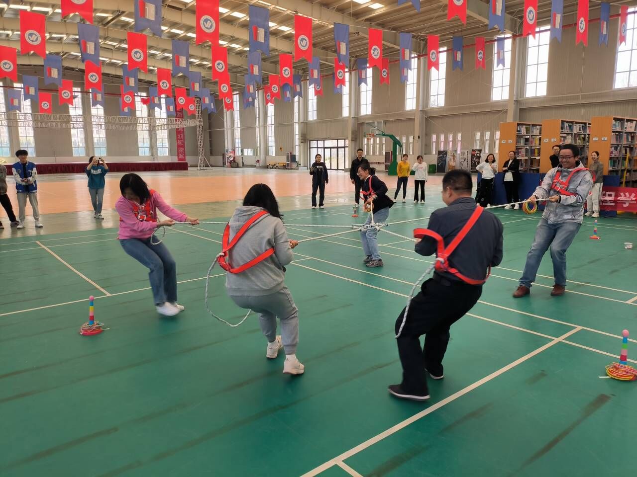 为丰富教职工文化生活,加强教师之间的合作交流,帮助老师们在工作之余缓解压力、放松心情,4月13日中午,太阳成集团tyc9728工会于文体中心举办了教职工趣味拔河比赛。公司党总支副书记王明印及全体教职工参加比赛。