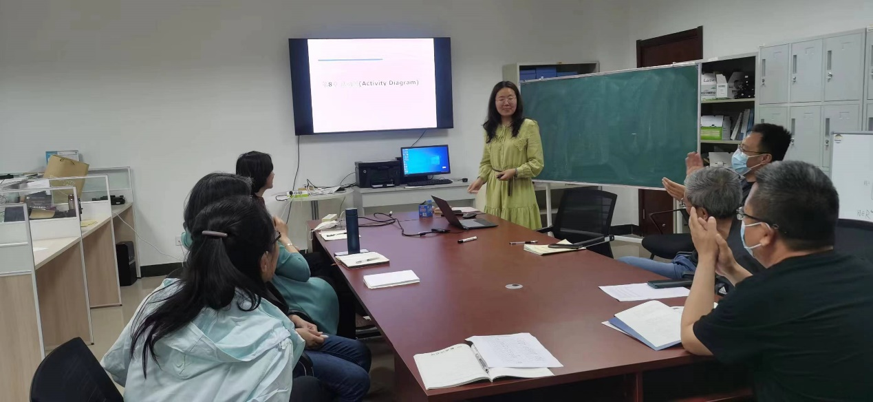 教研活动共分为两个环节:第一部分是教学观摩,老师们观摩了赵树梅老师的《同步触发器》、孙立媛老师的《活动图》课堂教学演示,两位老师以“启发式教学”为核心,通过提问、讨论等方式,详细讲解了所选内容,达到知识的深入理解。在教学过程中,赵老师注重营造积极的学习氛围,使用多媒体等现代化教学手段,让员工愉悦地参与到课堂中来;孙老师以前言知识为导入,充分体现出了新时代教育的理念,注重引导员工深入思考、探究。