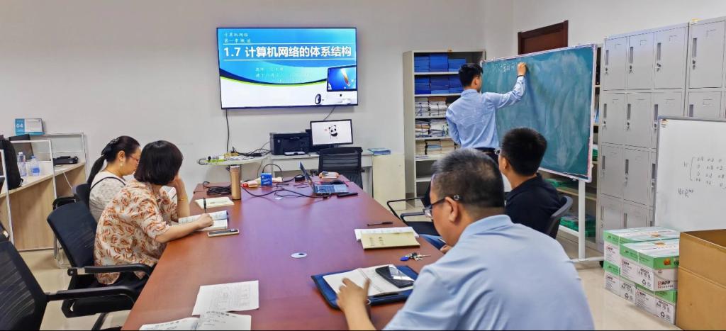 教研活动共分为两个环节:第一部分是教学观摩,老师们观摩了宫萍老师的《微程序控制》、张文超老师的《计算机网络的体系结构》课堂教学演示,两位老师以“启发式教学”为核心,通过提问、讨论等方式,详细讲解了所选内容,达到知识的深入理解。在教学过程中,宫老师注重营造积极的学习氛围,使用多媒体等现代化教学手段,让员工愉悦地参与到课堂中来;张老师以幽默诙谐的风格挥洒课堂,充分体现出了新时代教育的理念,注重引导员工深入思考、探究。