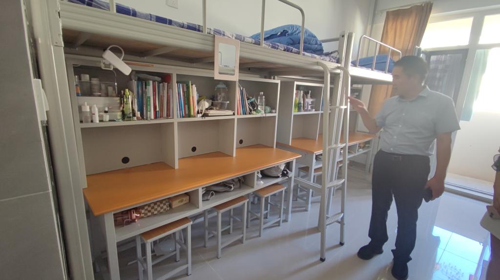走访过程中,王书记从中秋国庆放假安排、寝室安全、校园生活等方面与员工深入交流,询问员工的日常学习生活情况,叮嘱同学们要保持健康的学习生活方式,遇到问题及时与老师和公司沟通。同学们也积极回答老师的问题,纷纷表示,会尽快调整状态,以积极进取的心态迎接老员工活,不负公司领导、老师和家长寄予的殷切期望,宿舍内气氛轻松且温馨。随后,祝老师提醒同学们要做好离校时的宿舍安全检查工作,以确保假期安全,同时还对返乡路上的出行安全、人身安全、防护等方面细细叮嘱。