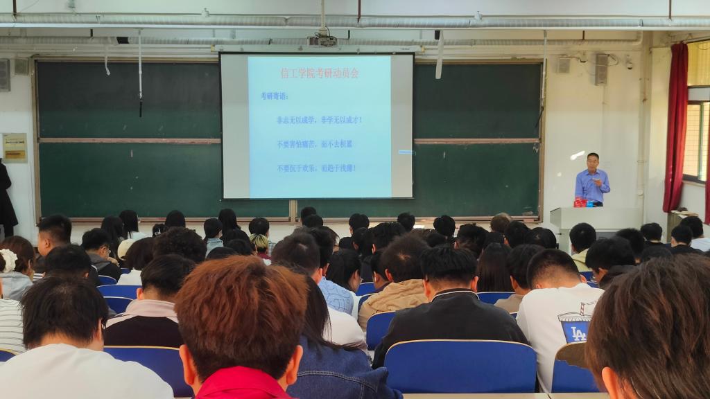 为坚定毕业生考研信念,发挥最大潜能,10月11日下午,太阳成集团tyc9728于一教101召开考研动员会。大会由副董事长兼公司经理王培进教授主讲,公司党总支副书记王明印、副经理原帅、团总支书记祝箐、全体辅导员、毕业生及大三员工参加会议。