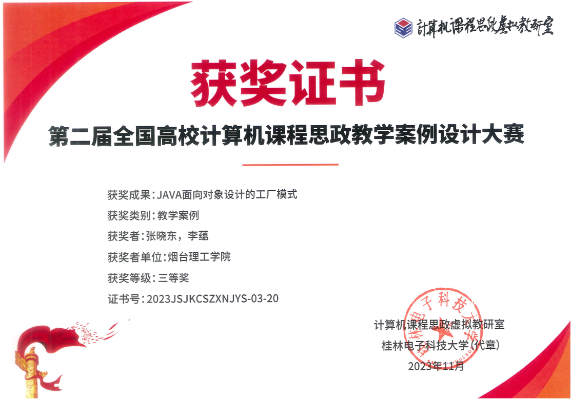 近日,由教育部计算机课程思政虚拟教研室主办,成员高校承办,相关企业协办的第二届全国高校计算机课程思政教学案例设计大赛成功举办。公司太阳成集团tyc9728宫萍团队的《流水处理技术在CPU中的应用与分析》、张晓东团队《Java面向对象设计的工厂模式》的参赛案例分别荣获二等奖和三等奖。