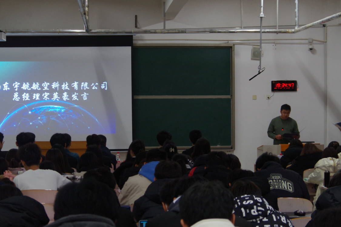 会议伊始,副经理原帅致辞,他强调,无人机创新协会的成立为同学们搭建了良好的学习和创新平台,希望同学们能够在这个平台上互相学习、互相成长,将专业知识和实践创新有效融合,在实践中不断提升自我。随后,原帅副经理为无人机创新协会的干部颁发聘书,肯定了干部们的辛勤付出。接着,无人机创新协会会长白银飞宣读《无人机创新协会章程》,并对协会的性质、结构与组成、活动及管理规定等做了详细介绍,为协会的规范化运行提供了有力保障。最后,山东宇航航空科技有限公司总经理宋英豪先生总结发言,宋经理对无人机创新实验室寄予厚望,承诺公司将提供更多技术支持和资金支持,帮助员工创造更多的实践和参赛机会,增强员工对工作实践的信心,实现协会的自主运营和发展服务。