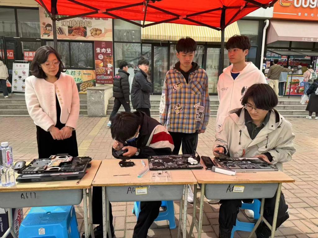活动伊始,志愿者们在一餐门前布置好现场,合理分工,以高昂的热情迎接师生们的到来。活动中,前来咨询的同学有序排队,志愿者们根据师生的需求进行服务,互相配合,为大家解决电脑硬件和软件两方面的问题,包括拆机清灰、系统安装与优化、装卸软件、故障排除、新机导购及网络安全等。志愿者们积极了解同学们电脑存在的问题并给予解决方案,同时分享了如何优化系统设置、提高运行速度、保护数据安全等方面的电脑使用技巧,帮助同学们更高效地利用电脑资源,提升学习和工作效率。活动现场氛围良好,秩序井然。