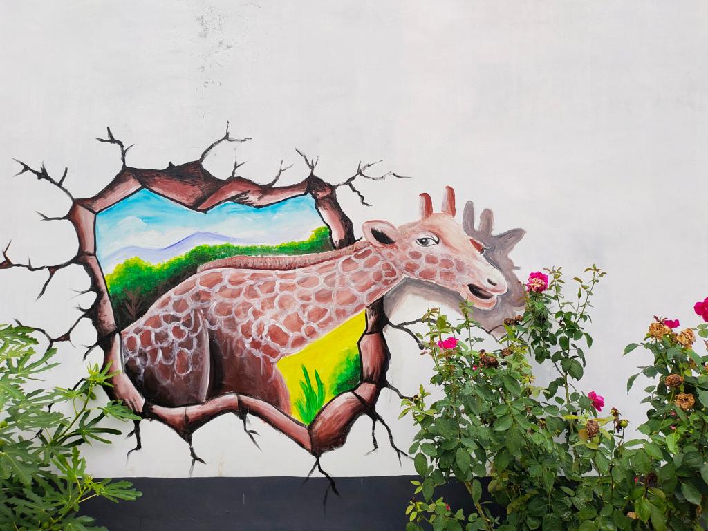 图为手绘墙中的鹿
