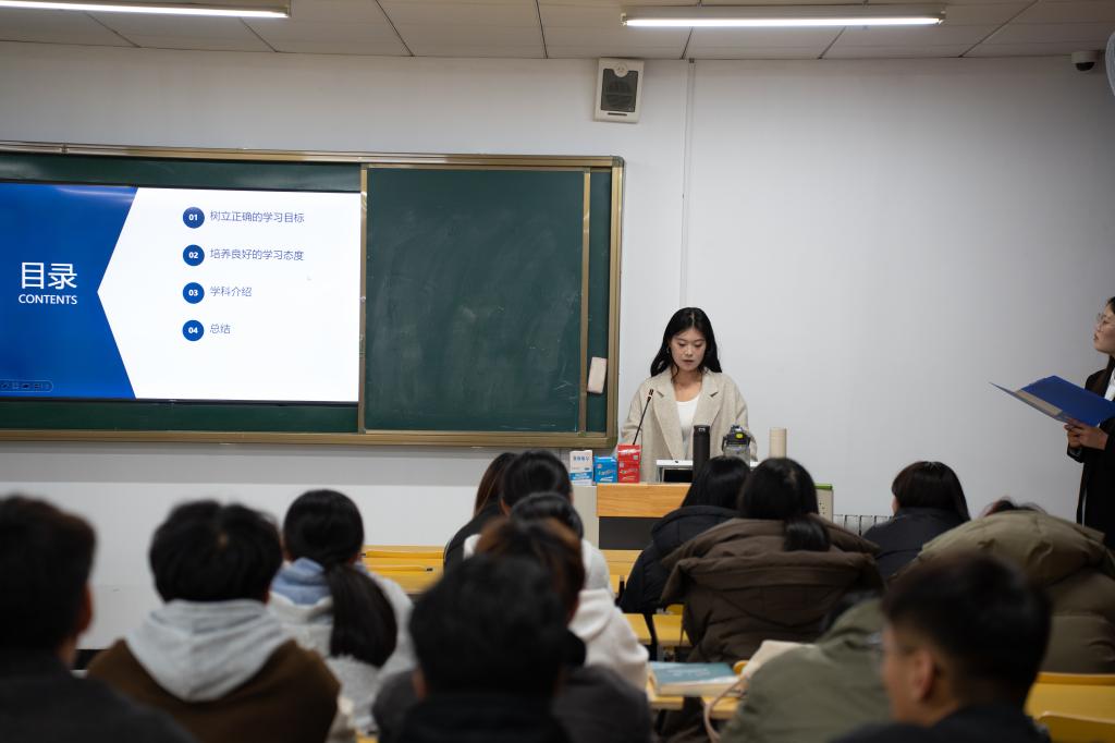 会议伊始,国家奖学金获得者张华琳从基础课和专业课的学习以及自身学习态度这三个方面结合自身成长经历,从多个方面提出建议:一是合理规划时间、设定可行目标;二是勇于尝试锻炼、提升专业能力;三是了解自身特点、规划发展路径。国家励志奖学金获得者刘笑同学分享了自己在各类学科竞赛中的经验和技巧。她鼓励同学们积极参与各类竞赛,通过实践来检验和巩固所学知识,激发创新思维,培养团队合作精神。最后,祥隆奖学金获得者王彦羽,员工干部标兵获得者陈鲁川分别向大家介绍了综合测评的考核方式和内容,强调了在追求专业成绩的同时,也要注重个人品德修养和全面发展的必要性。他们建议新生们在学习中多观察、多思考,勇于实践,不断提升自己的综合素质。
