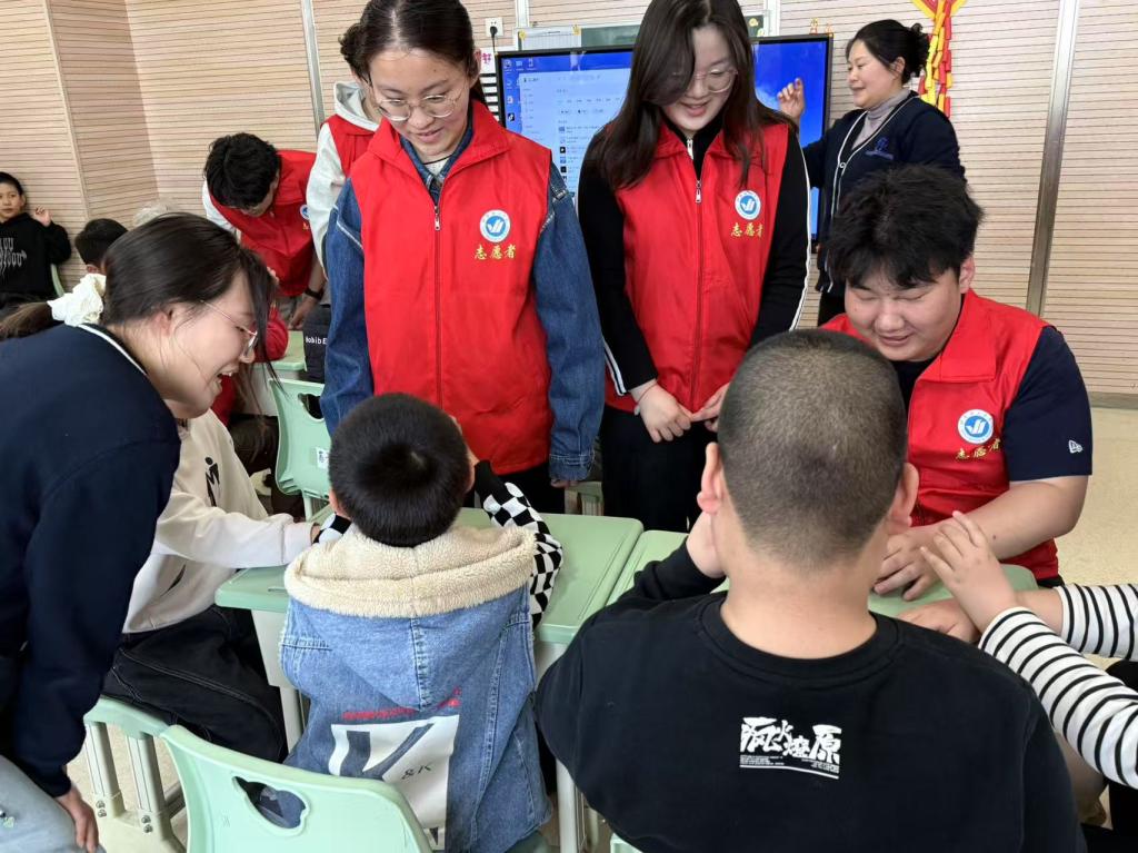 活动伊始,志愿者通过纸杯扣球、盖糖果等趣味游戏引导孩子们进行注意力训练,手把手教授技巧并给予实时鼓励。在游戏经验分享环节中,志愿者耐心交流,消除了彼此间的隔阂。最后的手工创作阶段,孩子们在志愿者协助下完成糖果花制作,逐渐敞开心扉,在欢声笑语中消融了初见的陌生感,现场洋溢着创意与温暖交融的氛围。志愿者们纷纷表示,此次活动不仅增强了自身的社会责任意识,更认识到关爱特殊群体需要全社会的共同努力。今后他们将会积极参与孤独症儿童康复训练、技能帮扶等专项服务,为孤独症儿童搭建包容成长的桥梁。