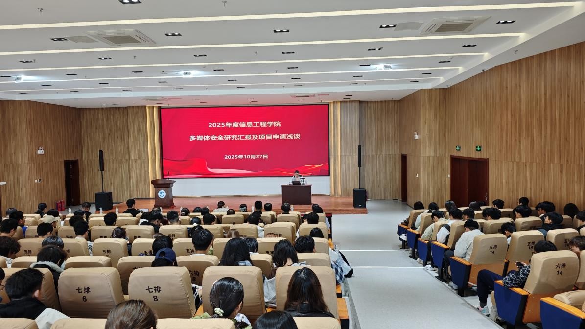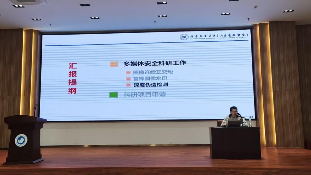 在汇报过程中,王教授紧密围绕“多媒体安全领域研究进展”与“国家(省级)科研项目申请要点”两大核心板块展开深入分享。其中,“多媒体安全领域研究进展”板块紧扣当前网络空间安全需求与学术前沿方向,融入其团队在图像特征提取、数字水印优化、深度伪造检测等方向的实测数据与创新成果;“国家(省级)科研项目申请要点”板块则基于其多次成功获批基金项目的实战经验,不仅系统解读领域内技术发展动态与科研选题方向,更针对申报中易忽略的逻辑梳理、材料打磨等关键环节拆解核心思路,为在场全体教师及员工提供兼具理论深度与实践指导性的专业解读,助力其更加清晰地把握科研与申报的内在关联。