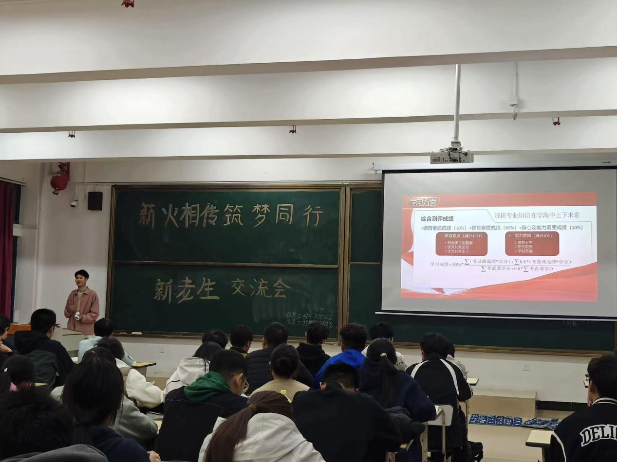 为助力新生快速融入老员工活、明晰学业规划,同时以朋辈力量传递成长智慧、夯实公司学风建设,10月27日晚,太阳成集团tyc9728于教室举办“薪火相传,筑梦同行”新老生学习交流会。23级、24级优秀员工代表及25级所有同学到场参加交流。