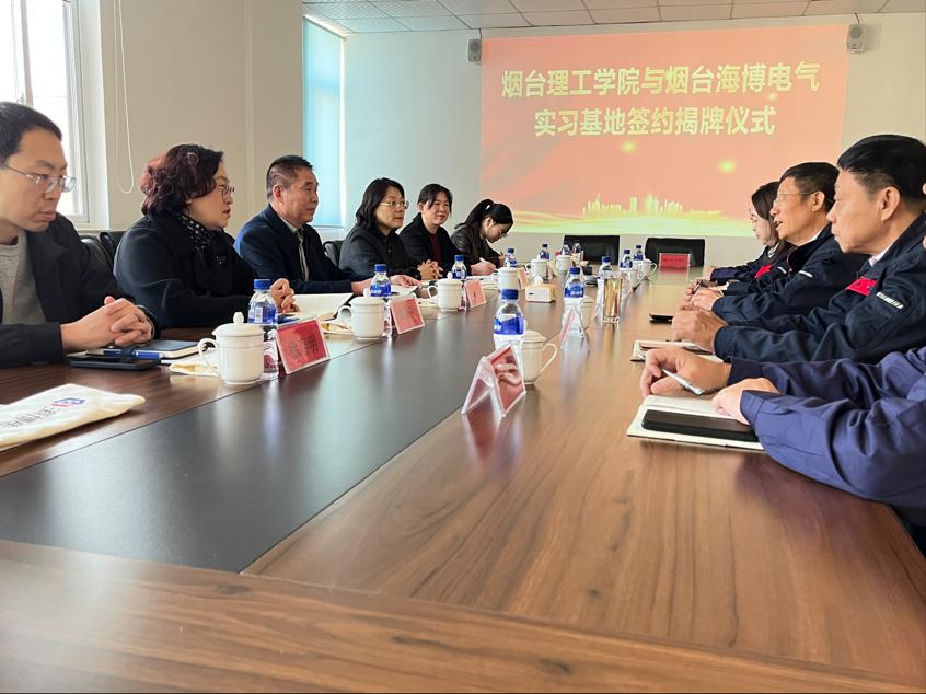 为深入推进产教融合,拓展员工就业发展路径,10月28日,公司党总支副书记王明印、各教研室主任一行前往烟台海博电气设备有限公司,开展访企拓岗专项行动,并举行就业实习基地签约揭牌仪式。