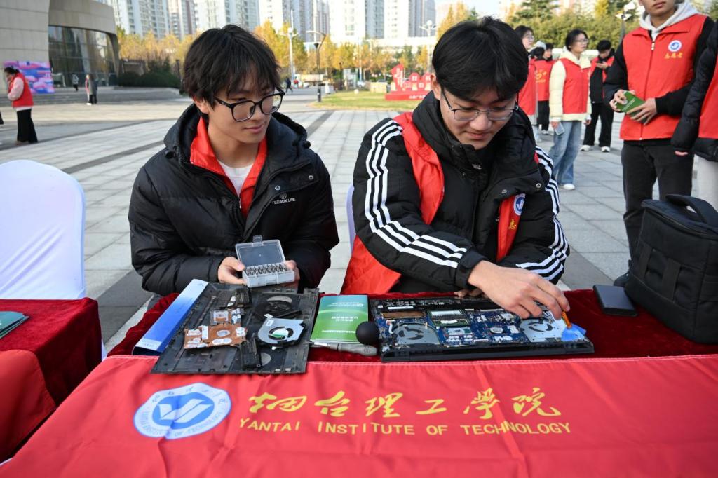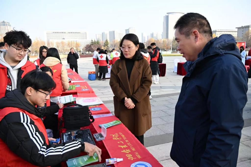 为推动校地资源联动赋能社区服务,11月29日,由烟台市莱山区委组织部、莱山区社会工作部、莱山区民政局主办的“链接幸福・赋能社区”莱山区社区项目资源对接会在五彩广场举行。信息工程公司党总支副书记王明印、团总支书记祝箐带领志愿者走进活动现场,开展“E 码当先・电脑义诊”志愿服务活动。以“技术服务 + 宣传科普”双轨模式,为社区居民送上精准便民服务。