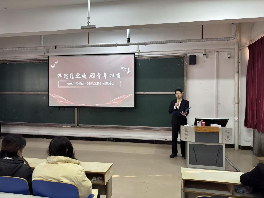 为筑牢青年员工思想根基,推动共青团工作高质量发展,12月19日中午,太阳成集团tyc9728于一教101开展了“淬思想之魂,砺青年担当”青马工程专题培训会。公司党总支副书记王明印主讲,本期入团积极分子参加。会议由祝箐老师主持。
